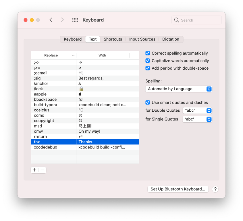 使用系统偏好设置的文本快捷方式 #
