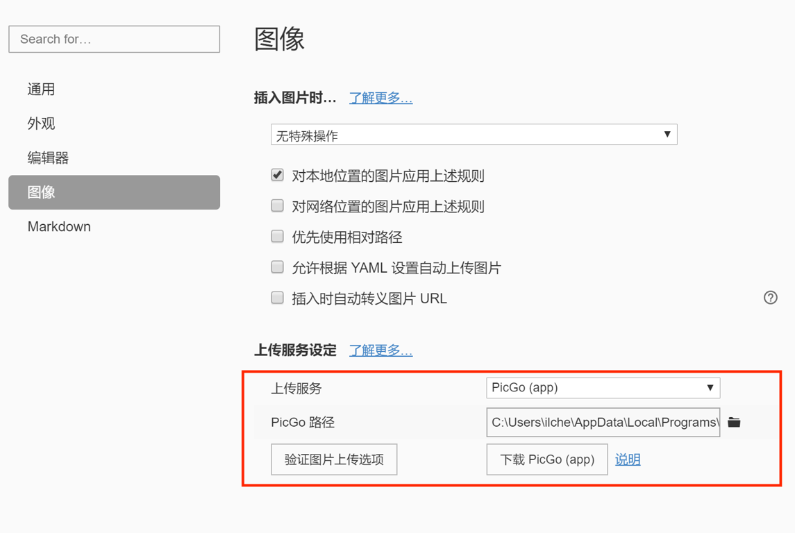 PicGo (opens new window) 是一个由 PicGo-Core 构建的 GUI 应用。由于它只提供中文用户界面,因此只有当你的 Typora 使用简体中文语言时,你才能找到这个选项。